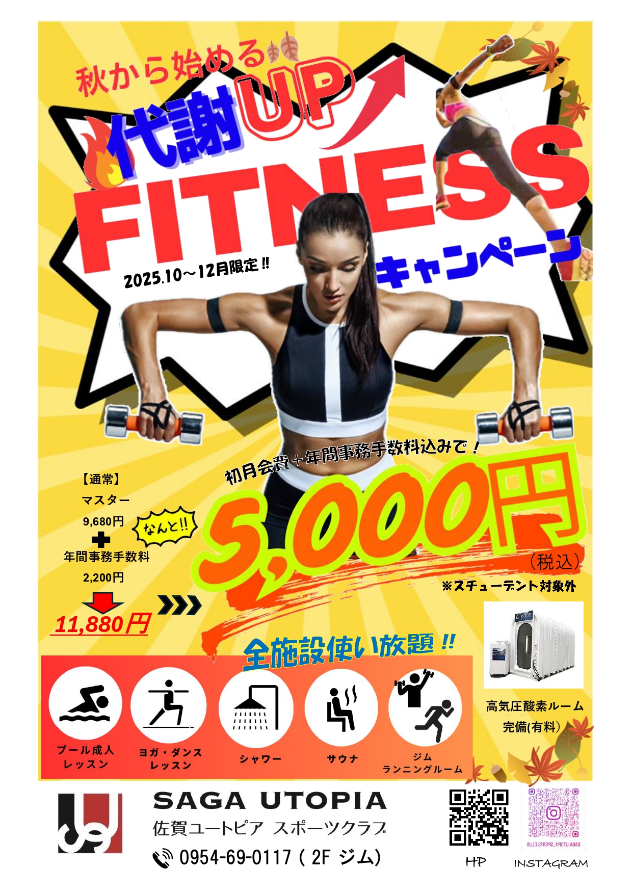 10月~12月限定!秋から始める!代謝UP フィットネスキャンペーン‼